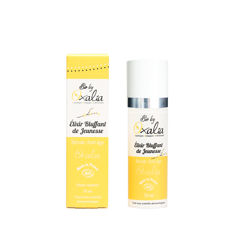 Concentré huileux (synergie d'extraits bio de thé vert, acérolat, argousier, vigne rouge, ...) anti-âge et fermeté, utilisation sur le visage et le buste.